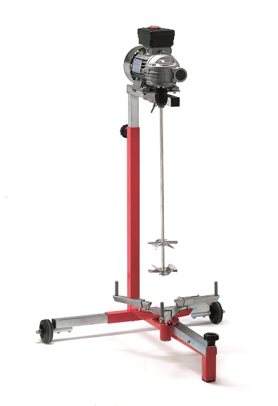 Leistung: 370W / 230V Getriebemotor mit drehbarer Behälterhalterung und höhenverstellbarem Stativ. Ca. 70 U/Min und Bohrfutter zum Einspannen aller handelsüblicher Rührstäbe, Lieferung mit Rührpropeller Ø 100 mm.