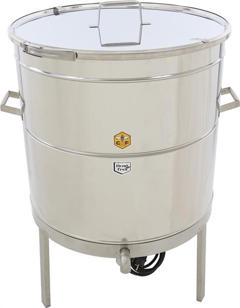 Ein Deckel mit Silikondichtung und Spannring dichtet nach oben vollkommen ab. Fassungsvermögen ca. 30 Normalmaß-, Zander- oder Langstrothwaben, Wasservolumen im Dampfbehälter 19 Ltr.